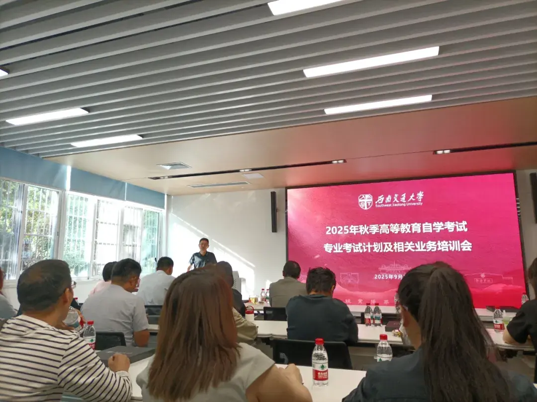 本次培训会内容翔实、议程紧凑,涵盖业务培训、表彰激励、项目宣讲与答疑解惑等维度,有效提升了各自考教学点人员的业务素养,明确了2025年秋季自考工作的规划方向。未来,西南交通大学将继续携手成都市成华区新概念外语培训学校教学点,为继续教育事业努力耕耘,为社会培养更多优秀人才贡献力量,致力于不断推动自考工作在规范化、专业化道路上再启新程。