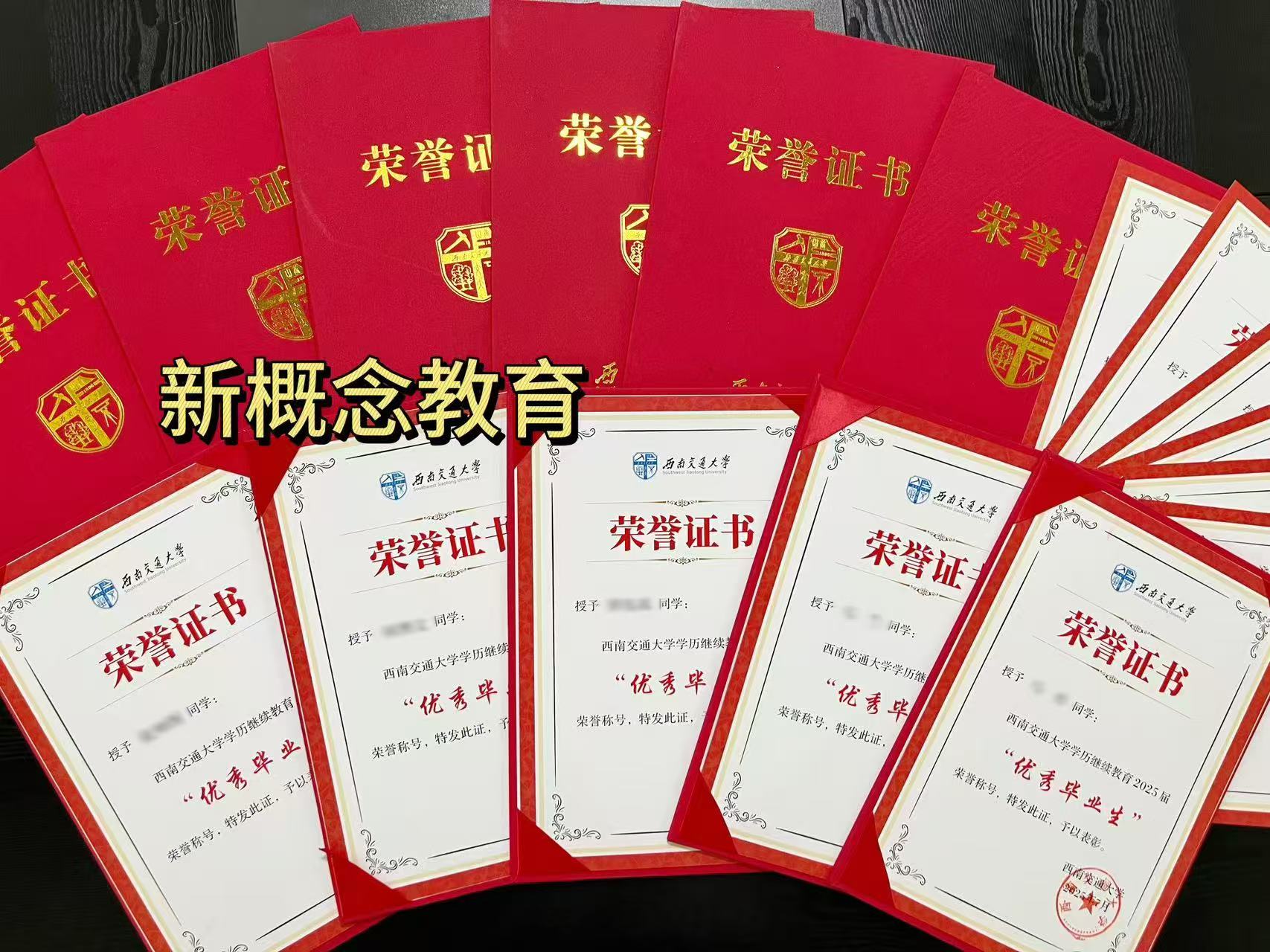 西南交通大学高等学历继续教育2025届“优秀毕业生”荣誉证书已下发到成都新概念学校助学点,请收到班主任老师私信的同学到大石西路12号新概念学校领取!恭喜同学们学有所成,学有所得,同时自己认真的学习与付出获得了学校的认可,也祝福你们在未来的路上带着这份荣誉走的更高更远,收获更远大的前程和更璀璨的人生旅途。