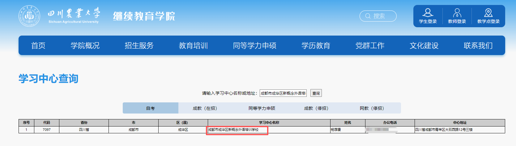 例如:成都市成华区新概念外语培训学校——四川农业大学继续教育学院官网