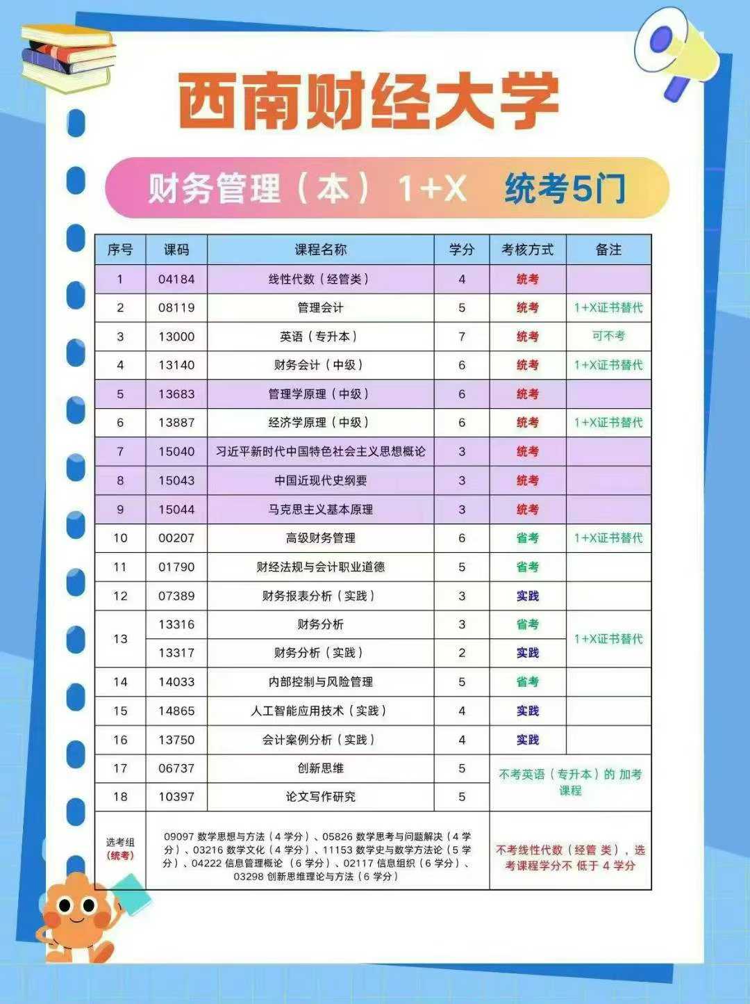 西南财经大学自考专业推荐——财务管理、会计学、大数据与会计(1+X项目可节省学习和考试时间,降低考试难度)