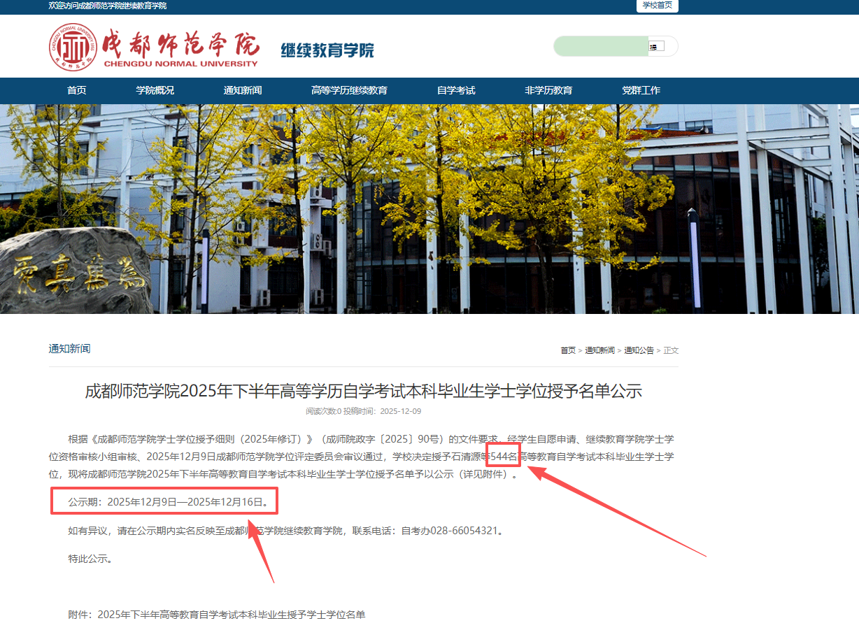 近期授位实力:2025 年下半年公示中,该校一次性授予 544 名自考本科生学位,覆盖小学教育、汉语言文学等热门专业,政策落地性强。