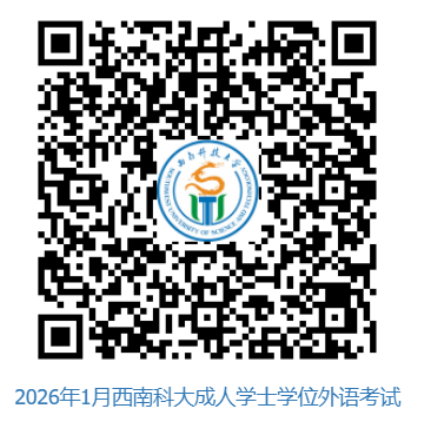 西南科技大学继续教育学院于2026年1月9日举行成人学士学位外语考试。为做好报名及考试工作,现将有关事项通知如下: