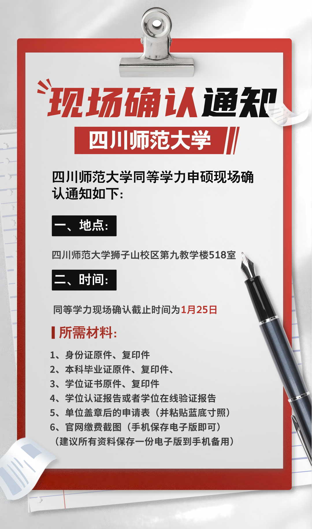 四川师范大学 2026 年同等学力申硕现场确认工作通知