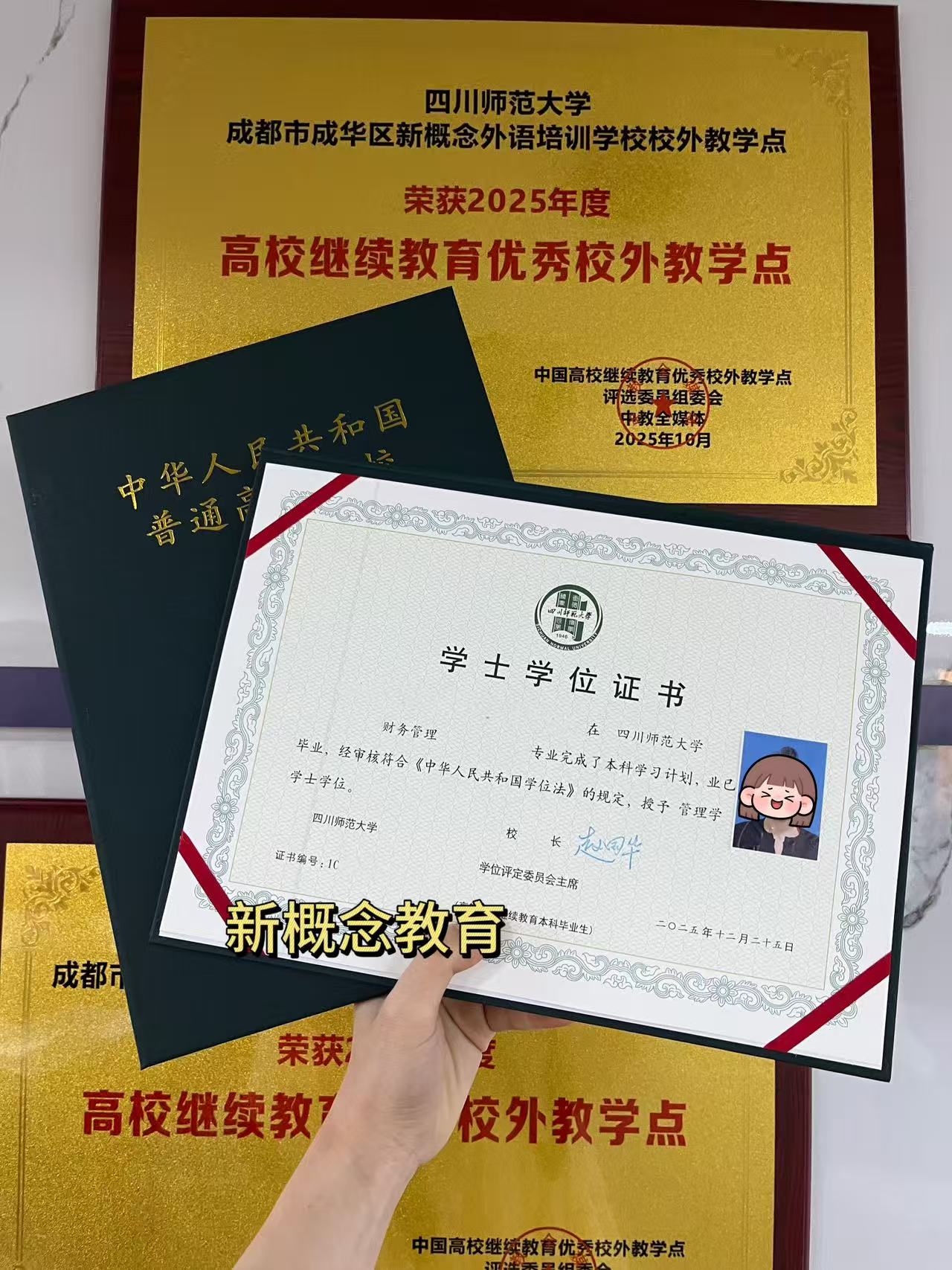 四川师范大学2026年成人高等教育学位证书已顺利发放至成都新概念学校助学点。为确保学位证书有序领取,现将相关事宜通知如下: