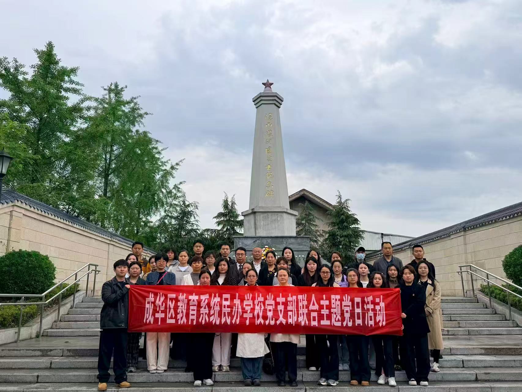为深入贯彻落实党的二十届四中全会精神,强化民办学校党员党性修养与使命担当,4月14日,成都市成华区教育系统第六联合党支部在院山坡烈士陵园,组织开展民办学校联合主题党日活动。全区民办学历学校、民办幼儿园、民办培训学校党组织代表、党建指导员、老党员工作室成员等齐聚红色教育基地,以祭扫先烈、参观学习的方式,传承红色基因,凝聚民办教育党建工作合力。
